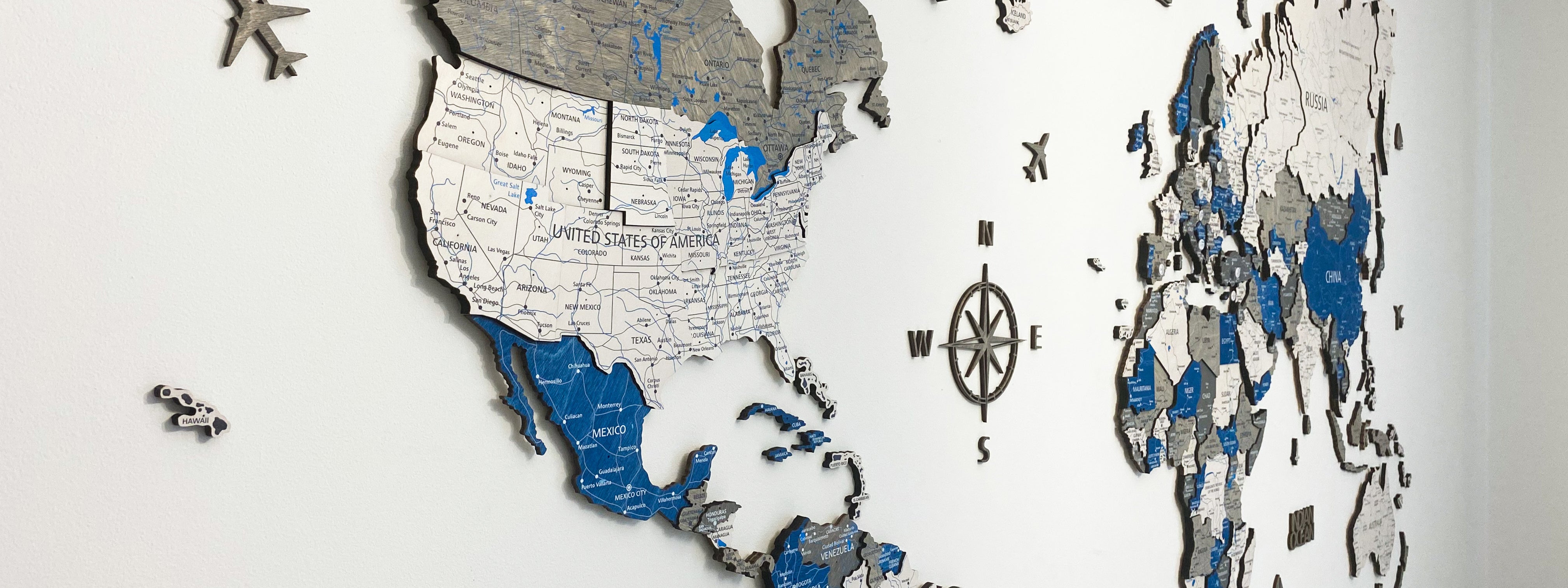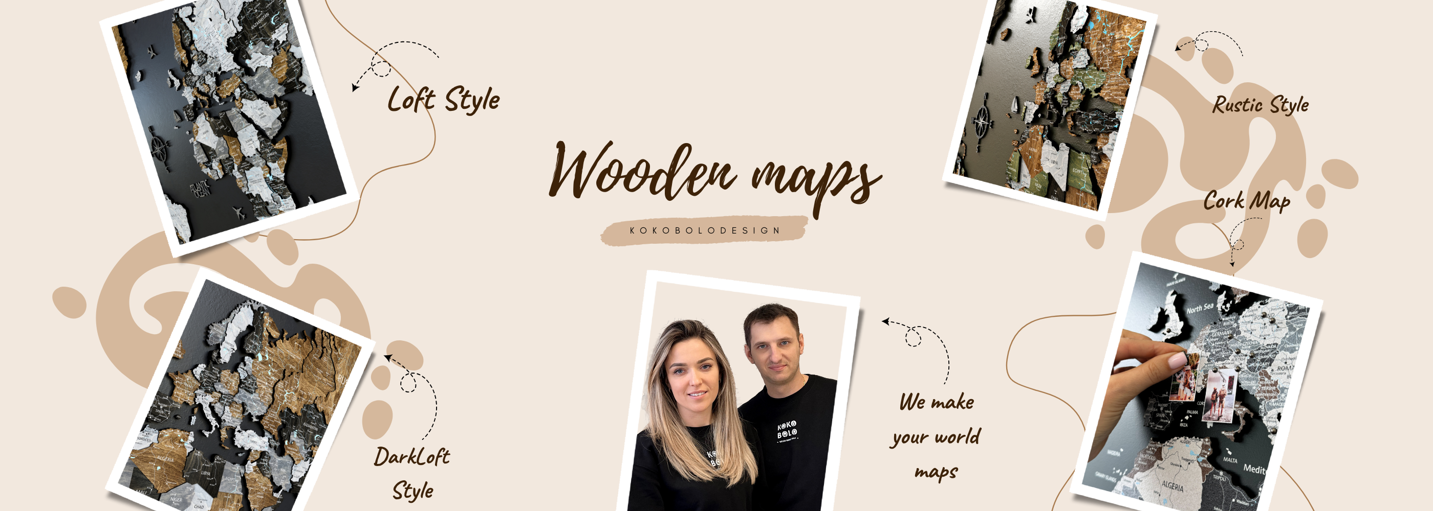 KokoBoloDesign begann mit dem Traum, die Atmosphäre des Reisens und der Welterkundung in unsere modernen Häuser und Büros zu bringen, ohne die Harmonie des Interieurs zu stören. Diese einzigartigen Weltkarten aus Holz sind mit keinem anderen Dekorelement vergleichbar und erfreuen sich weltweiter Anerkennung.