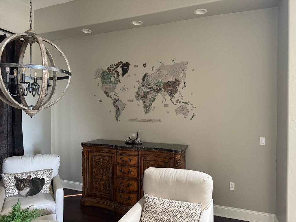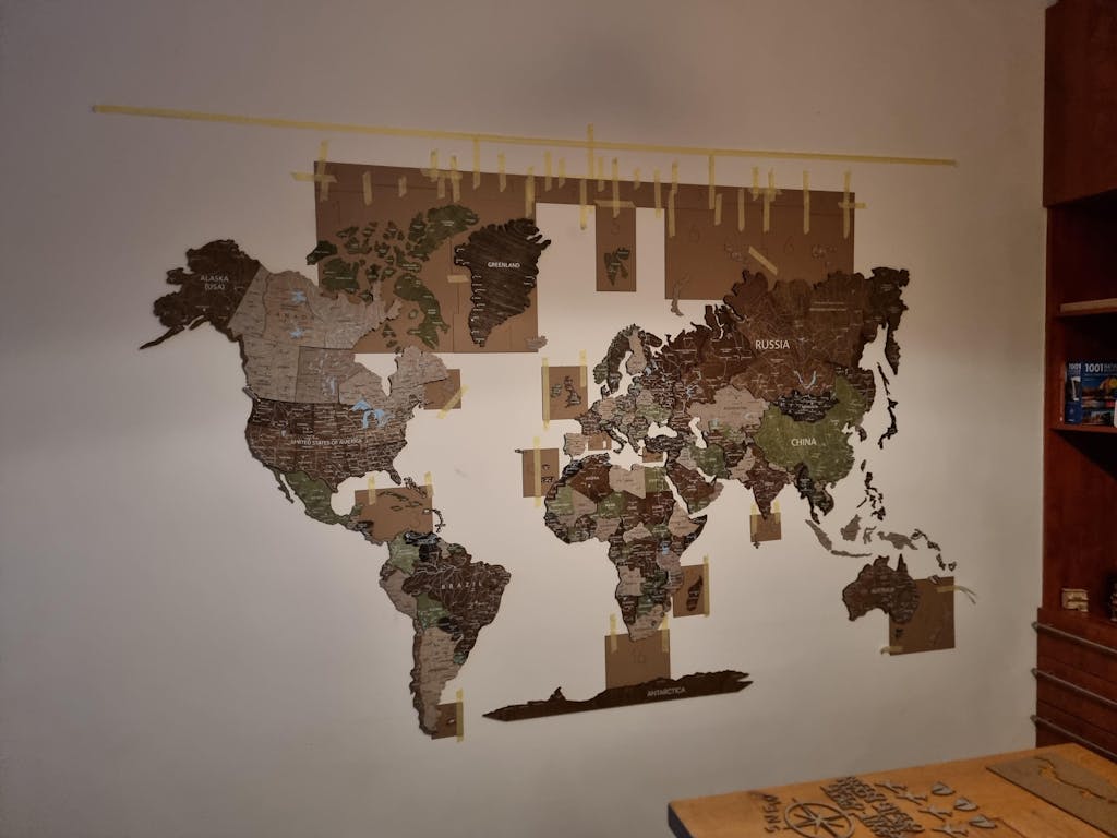 We love our map. I don't know what was more fun, putting it all together or looking at the map itself. Me and my wife had such a great time putting this on the wall. Did it slowly over 2 days. Now every time someone mentions a place in conversation we find it on the map. Just be sure to measure carefully because I would order one size larger if I could do it again.