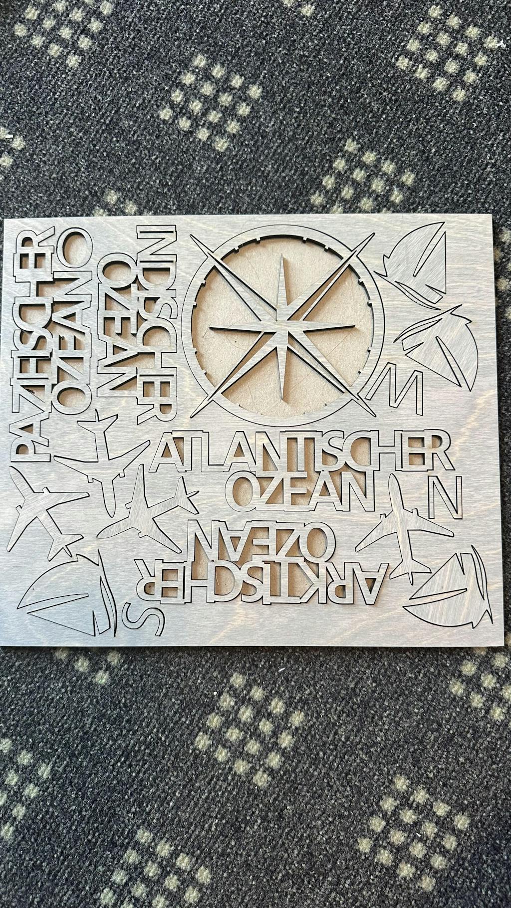 Der Aufbau gelingt mit den Schablonen ganz gut, zur präzisieren Ausrichtung von Afrika hätte ich mir noch eine kleine Schablone für den Abstand an der Straße von Gibraltar gewünscht, aber mit etwas Augenmaß geht das.
