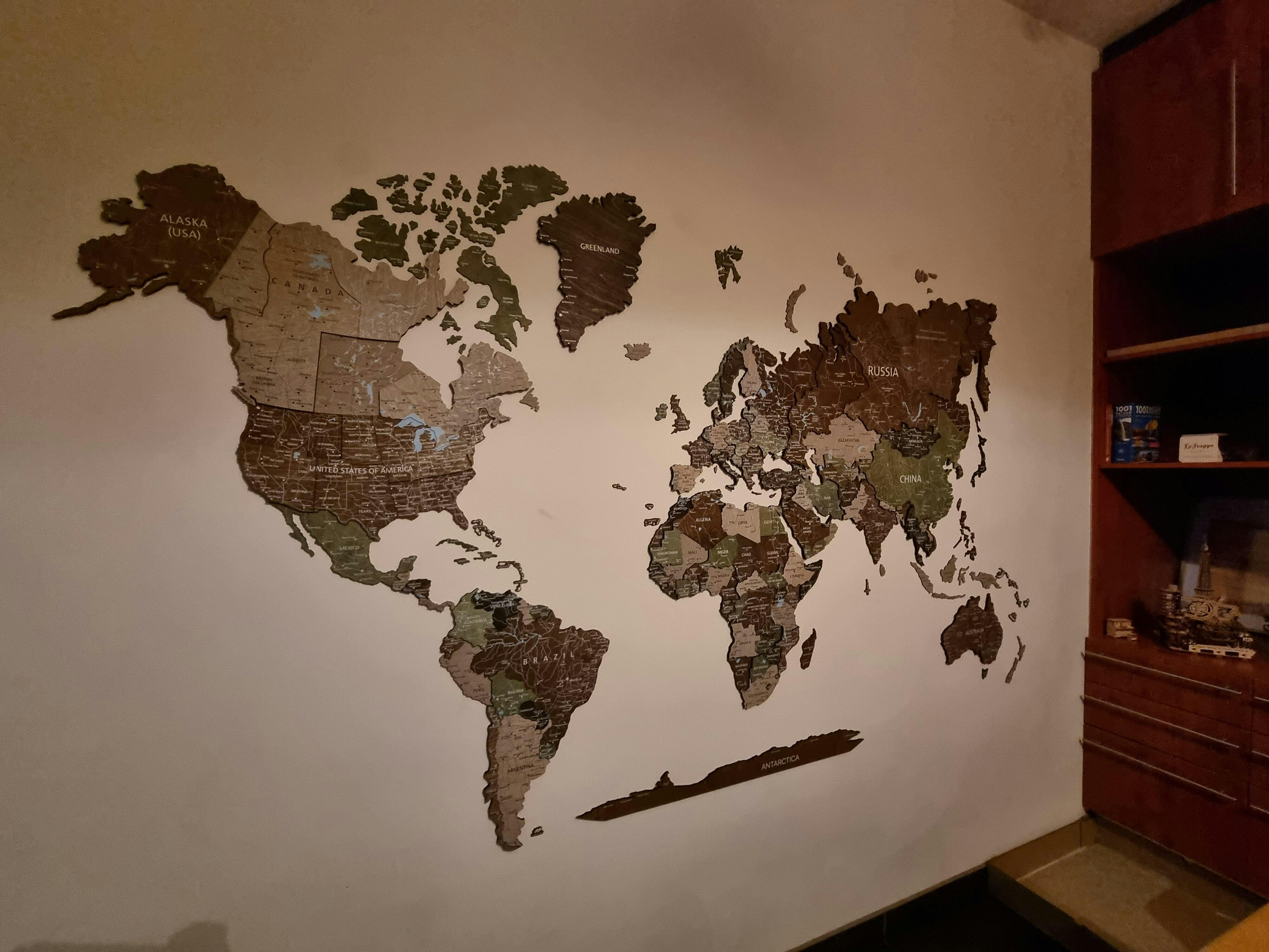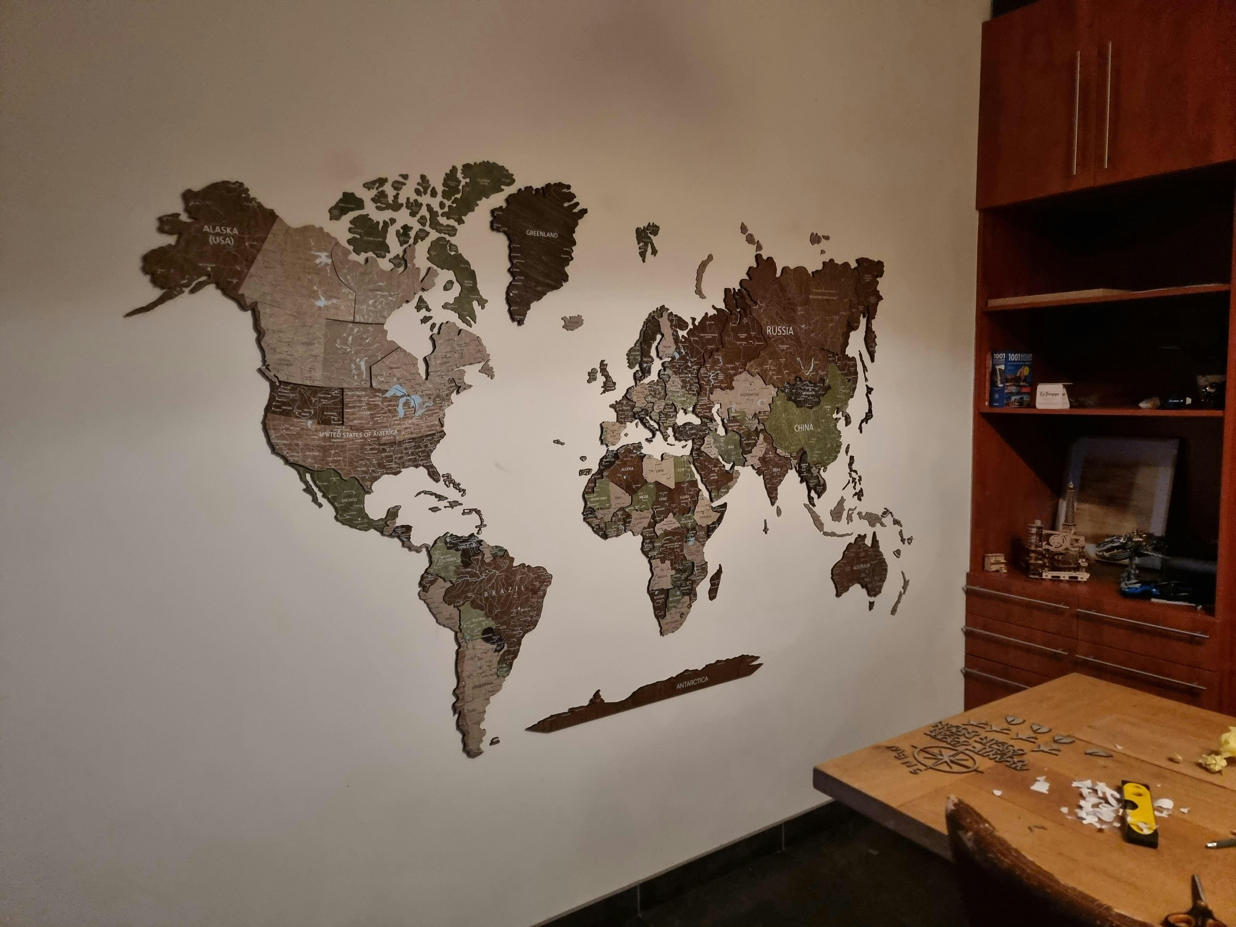 We love our map. I don't know what was more fun, putting it all together or looking at the map itself. Me and my wife had such a great time putting this on the wall. Did it slowly over 2 days. Now every time someone mentions a place in conversation we find it on the map. Just be sure to measure carefully because I would order one size larger if I could do it again.